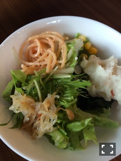 野菜だけではなく、マカロニサラダ、ポテトサラダ、パスタサラダ、春雨サラダもあり、ボリューム感あり!